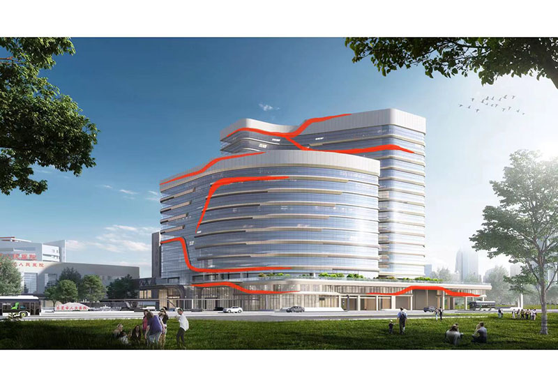 交通出行改善。院區(qū)建筑間還特別設(shè)置了連廊慢行系統(tǒng),即便在風(fēng)雨天氣,市民也能暢通無阻地直達(dá)各功能區(qū)域,實(shí)現(xiàn)“風(fēng)雨無阻,就醫(yī)暢通”。通過“醫(yī)療+交通”TID一體化設(shè)計(jì),項(xiàng)目可實(shí)現(xiàn)公交首末站、地鐵與醫(yī)院無縫銜接。地鐵方面,市民乘坐地鐵到站后,可直接通過電梯或者下沉廣場直達(dá)門診大樓、急救中心及科教中心等區(qū)域。公交方面,采用人性化的公交首末站設(shè)計(jì),大大提高居民出行便利性、提升城市公共交通系統(tǒng)效率。小汽車出行方面,送人車輛到達(dá)地下負(fù)一層“即停即走”區(qū)域落客后,市民可直接乘坐電梯到達(dá)門診大樓、急救中心及科教中心等區(qū)域,快捷便利。此外,地下空間項(xiàng)目設(shè)置了2層地下車庫,建筑面積約6.19萬㎡,增設(shè)約1200個(gè)車位,將有效緩解當(dāng)前就醫(yī)停車難題。