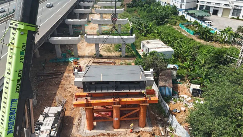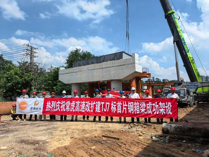 10月15日凌晨,正值華南地區(qū)旱季施工黃金期,隨著500噸汽車吊將36.98噸重的鋼箱梁(長9316mm、寬5333mm、高1617mm)穩(wěn)穩(wěn)架設在大嶺山互通A匝道橋指定支座上,?;⒏咚俑臄U建工程旱季攻堅迎來關鍵突破——由保利長大承建的施工第七合同段大嶺山互通A匝道橋首片鋼箱梁吊裝作業(yè)順利完成。這一成果的取得,是市路橋公司第四管理處黨支部聯(lián)合項目黨支部緊扣“旱季大干、提速攻堅”目標,以黨建引領生產(chǎn)、黨員沖鋒在前的生動實踐,標志著項目從下部結構施工轉入上部結構攻堅新階段,更為保障項目整體工期、助力大灣區(qū)交通升級筑牢根基。