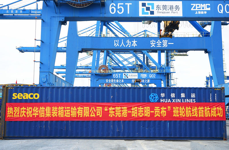 9月29日,“LIAN HE CAI FU”輪順利靠泊東莞港二期碼頭,標(biāo)志著“東莞—胡志明—柬埔寨貢布”集裝箱班輪航線正式開通。該航線由華信集裝箱運輸有限公司(以下簡稱“華信集運”)運營,是東莞目前唯一一條直航越南胡志明及柬埔寨貢布的班輪航線,將有效連接?xùn)|莞制造產(chǎn)業(yè)集群與東盟核心市場,助力粵港澳大灣區(qū)與越南、柬埔寨之間的經(jīng)貿(mào)往來。